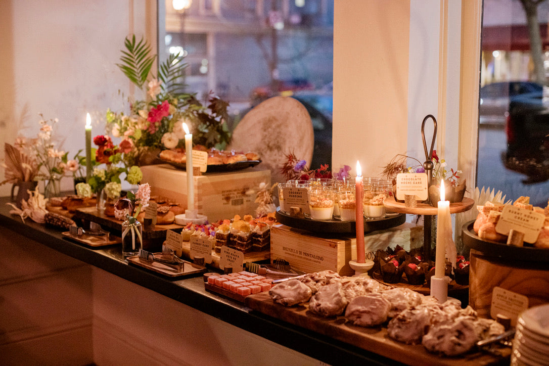 We offer custom cakes, dessert bars, artisan sourdough donuts, and small-batch confections, all thoughtfully crafted to make your event unforgettable.