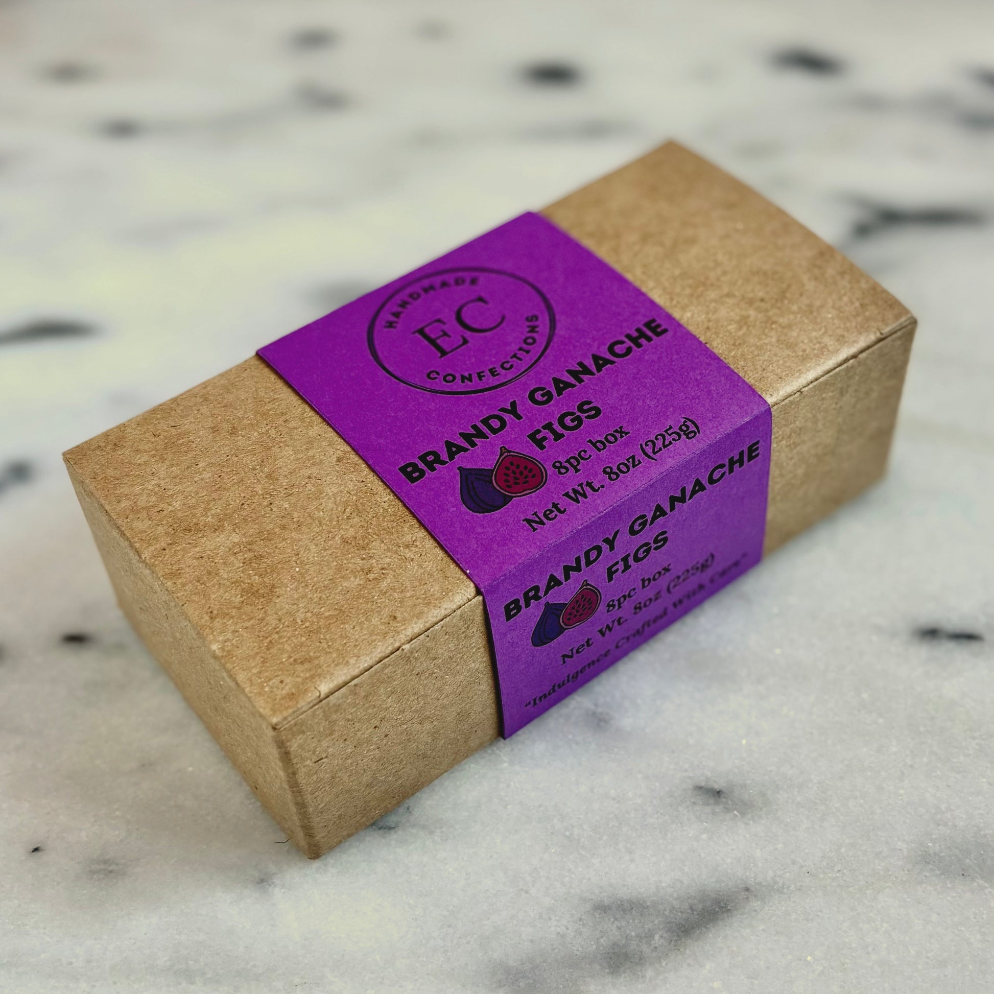 Organic dried figs are filled with our Classic Brandy Ganache, creating a chewy, creamy, and slightly crunchy confection. Each fig is dipped in 70 percent dark chocolate. This is one of our most indulgent treats, with an incredible balance of fruit, brandy, and chocolate.